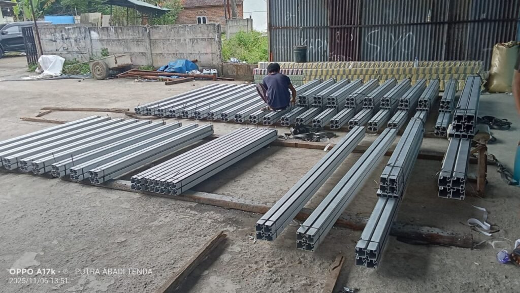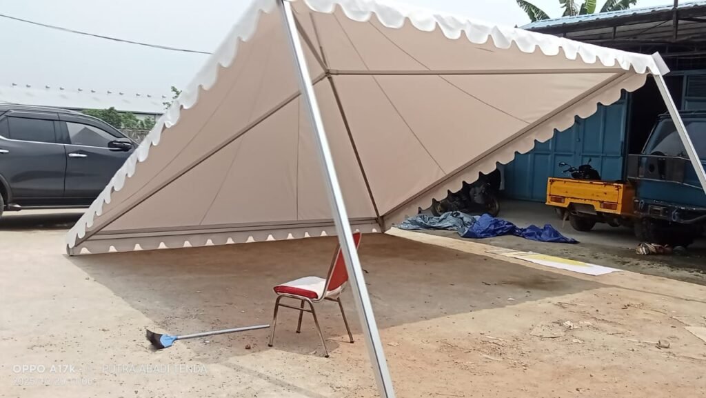 Kumpulan dokumentasi asli dari hasil produksi, pengiriman, hingga pemasangan tenda di lokasi pelanggan. Bukti nyata komitmen kami terhadap kualitas dan kerapian.
